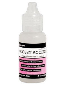 GAC27898Glossy Accents is a clear, three-dimensional gloss medium. Use to accent, brighten, magnify or add dimension to distinct areas on any scrapbook page, album cover, rubber stamped image, paper craft or home decor project. Use under embellishments to make them stick and on top to protect and make glossy. Acid free and non-toxic. Dries to a hard, clear finish. Available in a .5 oz. or 2 oz. bottle with needle-nose tip; prices vary.