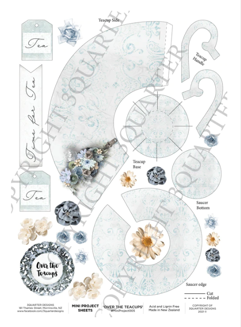 3Quarter Designs Embellishment, Mini Project Sheet - Over The Tea Cups