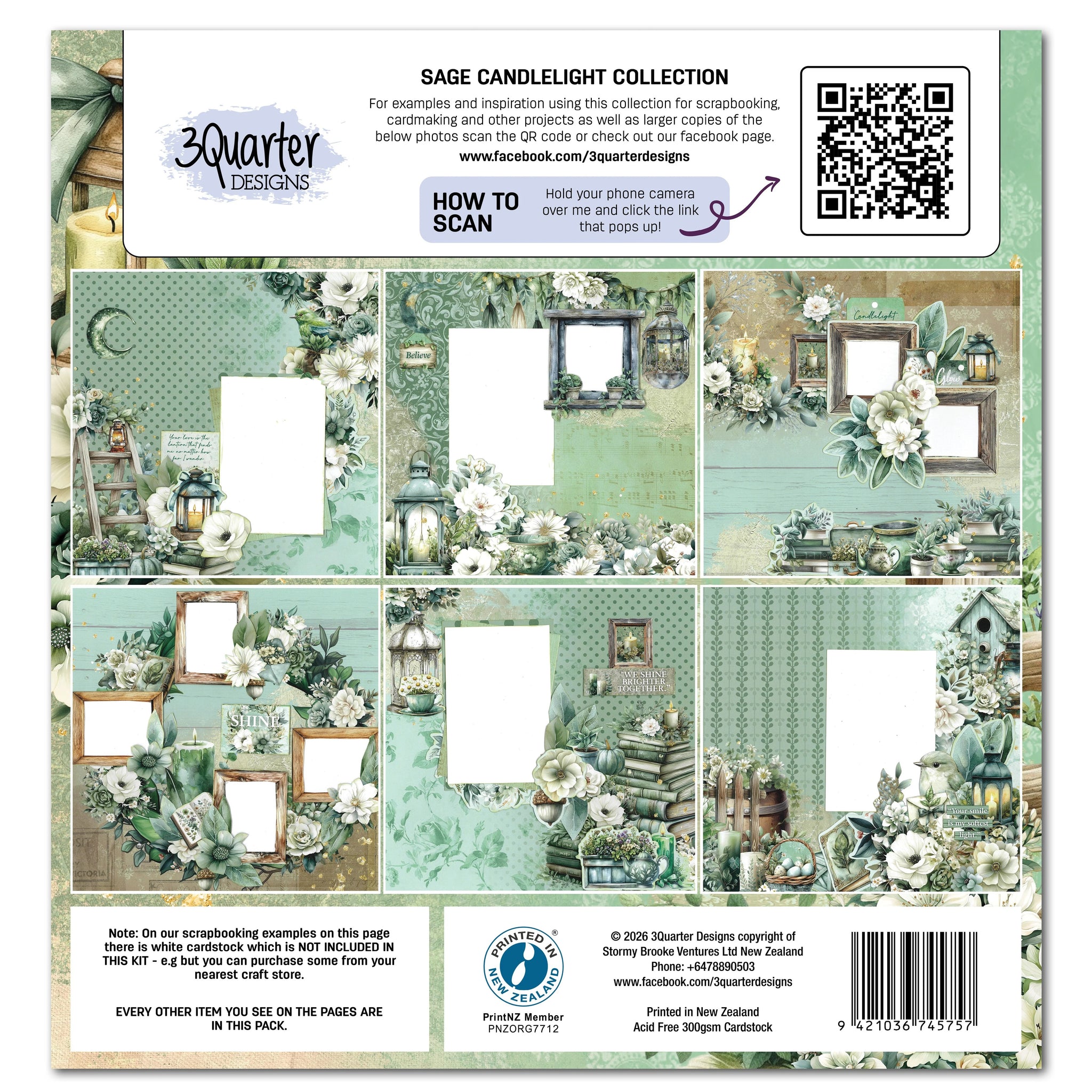 3Quarter Designs Sage Candle 12x12 Design Paper & Diecuts Set