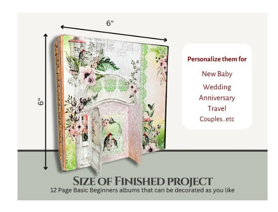 Create 2 beautiful basic 6x6 scrapbooks effortlessly! Looking to dive into scrapbooking without the stress of cutting, scoring, and assembling? This Junk Journal Scrapbooking Kit makes 2 albums and makes the process easy and fun! Save time and focus on the creative side, personalizing your scrapbook albums with any theme you love whether it's for a couple, baby, wedding, birthday, anniversary or vacation scrapbook.
