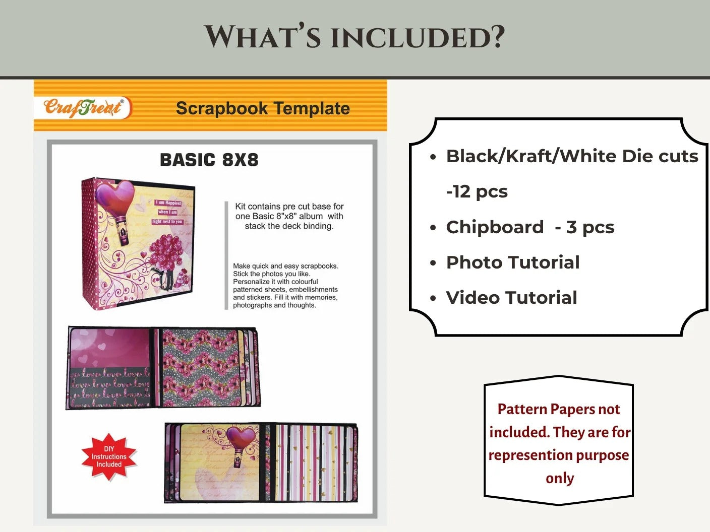 - Pre-cut chipboard covers and pages