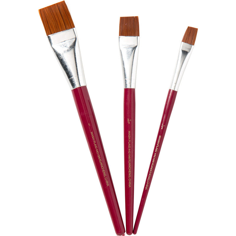 44219Upgrade your brushes with the 3-piece Plaid Wooden Flat Paint Brush Set. Enjoy the durability and various uses of these 3 handy paint brushes as part of your art supplies. With brown nylon bristles and red wood handles, this set is perfect for basecoating, stroke work, and more. Shade and highlight like a pro with the extraordinary bristles of these premium paint brushes. These superior-quality paint brushes can be used on everything from home decor projects to smaller paper crafts. Paint effortlessly with the versatile 3-piece Plaid Wooden Flat Paint Brush Set.
