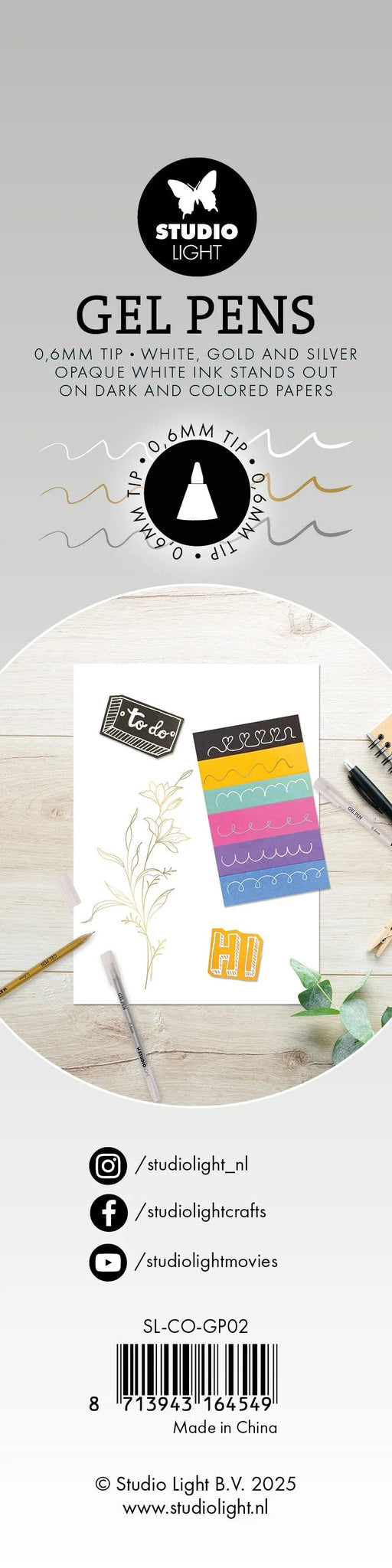SL Gel Pens White, Gold and silver 0.6mm Essentials 8x154x9mm 3 Pieces