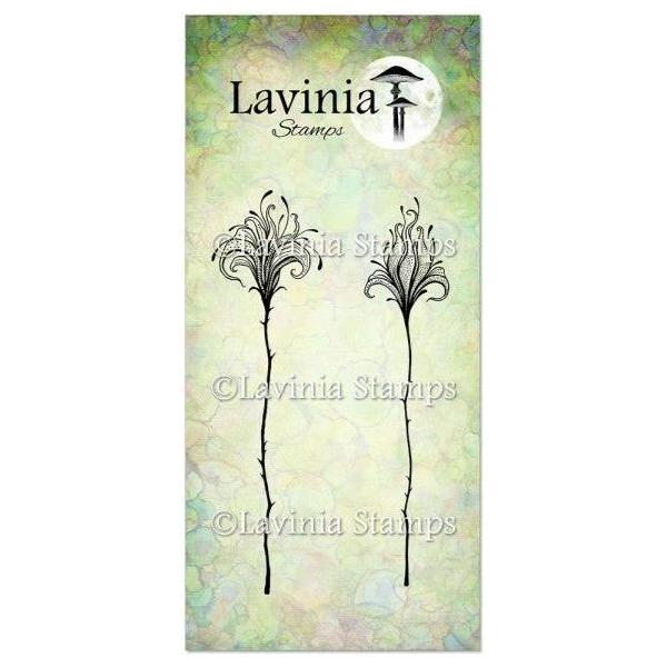 LAV903The Lavinia Stamps Flower Divine Set Clear Stamps includes two stamps featuring illustrations of single exotic flowers. These flowers are characterized by their beautiful curling spotted petals and long thorned stems.
