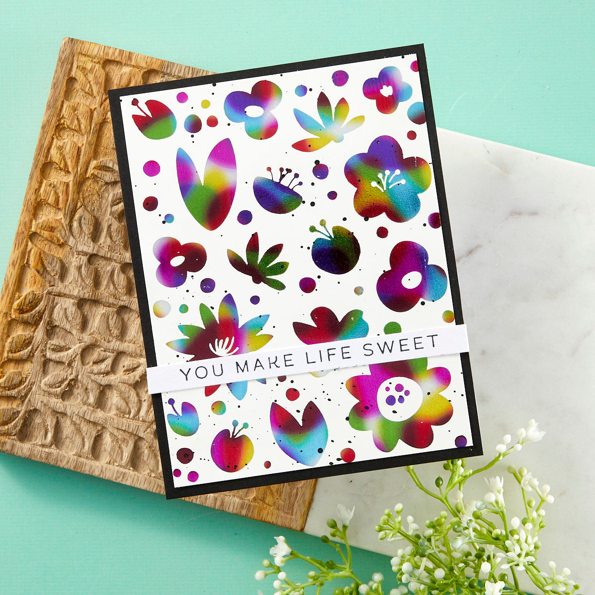 S5-685Sweet Life Floral Die is the optional add-on for BetterPress Society March 2025. Designed to coordinate perfectly with the press plate for the month, this large die cuts out an A2 panel with all the floral shapes. Great for creating additional dimension and options with the March plate!