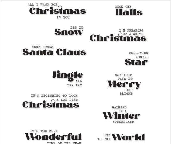 Inspired by the most iconic festive songs everybody loves. Seasonal Vibes #2 by Pete Hughes follows the Seasonal Vibes #1 with well known and loved phrases. This set of 12 clear stamps can are perfect for handmade Christmas cards, gift wrap and tags and much more. With a mix of font styles, try experimenting with different ink colours or even embossing inks and embossing powders for added detail. Pair with the Sizzix Stencil & Stamp Tool (664896) for perfect precision when inking onto your handmade papercrafts.