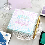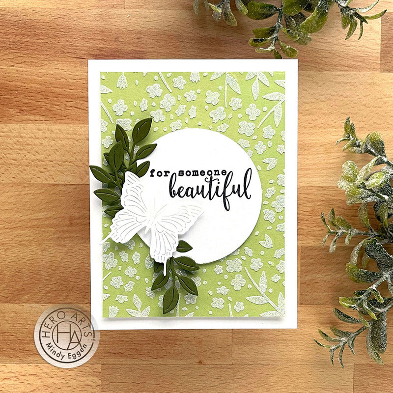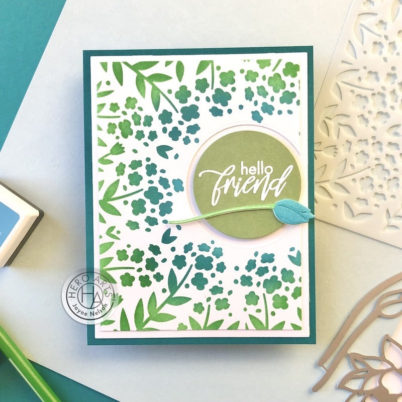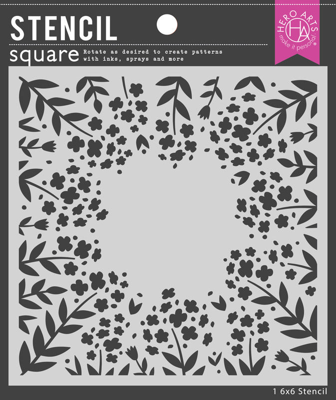 Measuring 6” x 6”, Hero Arts laser-cut stencils are made of thick frosted mylar. Use a paintbrush, ink pad, dauber, or spray to transfer the design to your favorite media.