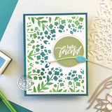 SA187A flower-filled stencil. It surrounds your stamped image with a radiating sweep of spring blossoms.